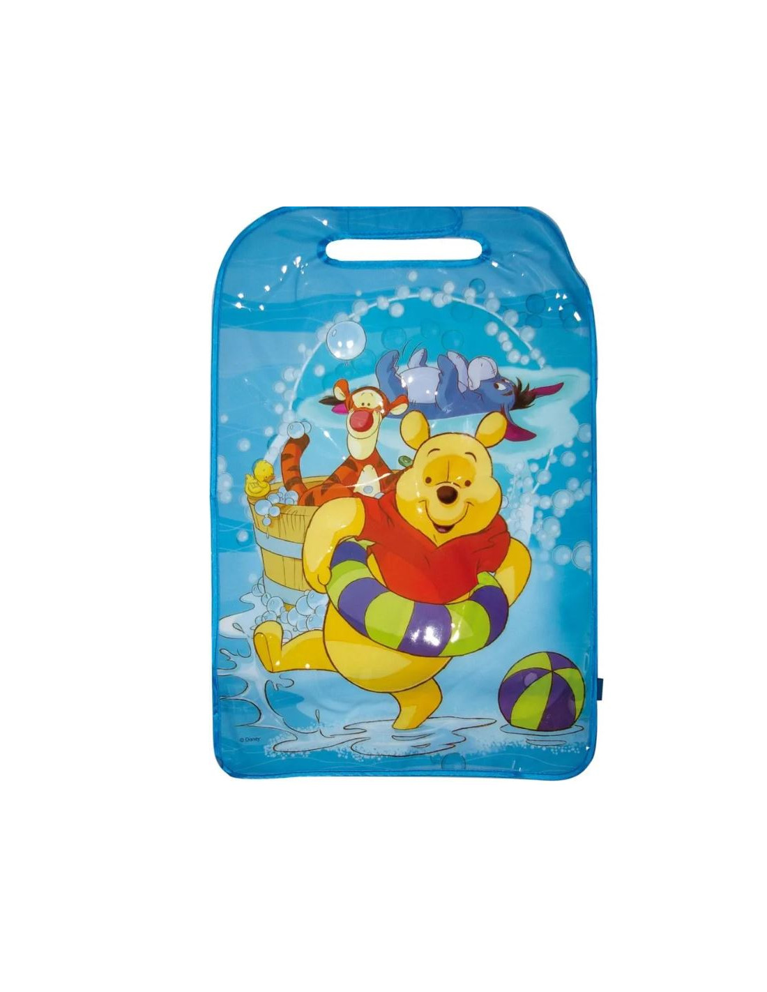 Osłona chroni tył fotela, a kolorowy motyw z ulubionymi postaciami z bajek uprzyjemnia dziecku czas podróży.