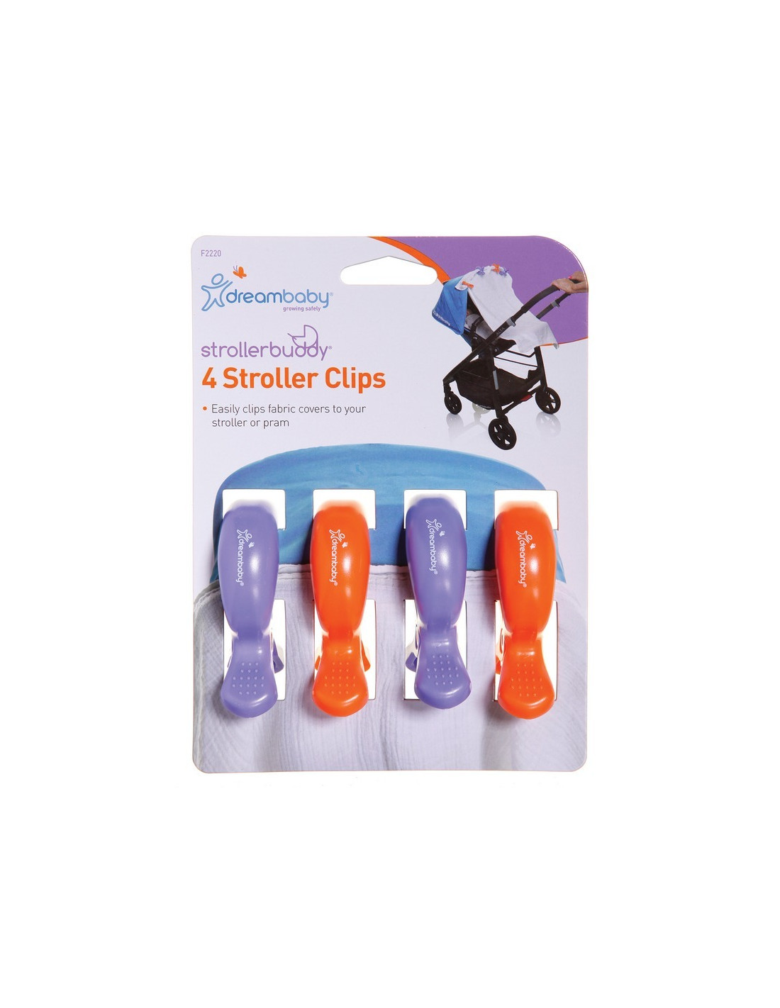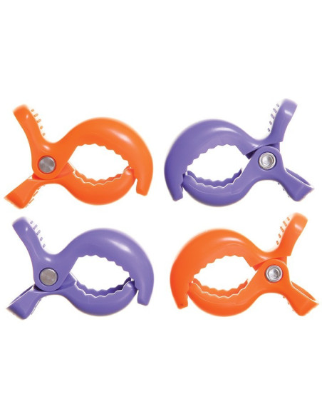 DREAMBABY Klipsy do wózka 4 szt. - 2x fioletowy, 2x pomarańczowy