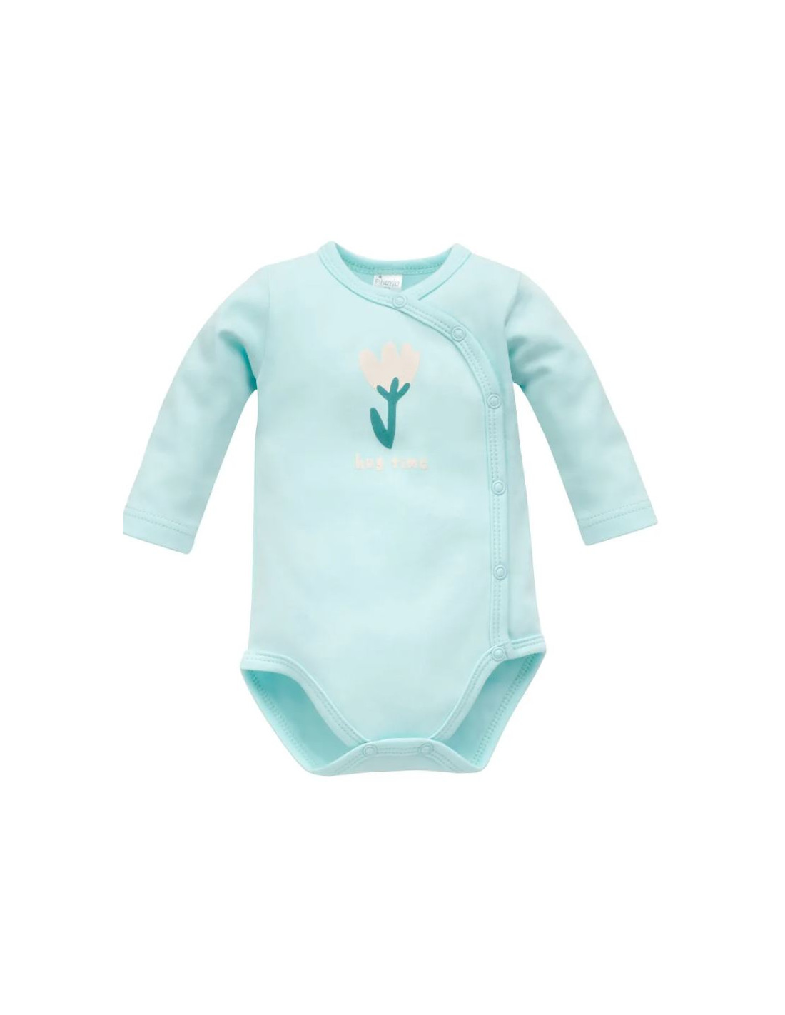 Body rozpinane z długim rękawem, uszyte są z miękkiej dzianiny bawełnianej w kolorze lodów miętowych. Na przodzie ozdobione są delikatnym sitodrukiem tulipana. Body można rozpinać na całej długości, co bardzo ułatwia ubieranie i przewijanie maluszka. Delikatny wzór bodów sprawi że każda mała dziewczynka będzie wyglądać świetnie. Doskonale zestawiają się z półśpiochami z tej samej kolekcji.