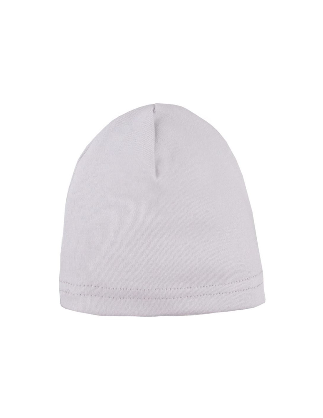 Czapeczka niemowlęca szara uszyta z miękkiej i przyjemnej w dotyku dzianiny bawełnianej. Czapeczka nie uciska główki dziecka. Czapeczki niemowlęce to obowiązkowy element wyprawki dla niemowląt. Przydadzą się również maluszkom narodzonym w letnich miesiącach. Wybierając czapeczkę dla dzidziusia zwracajmy uwagę na materiał z jakiego jest wykonana. Najlepszym wyborem będzie bawełna, która pozwala na oddychanie skóry dziecka.