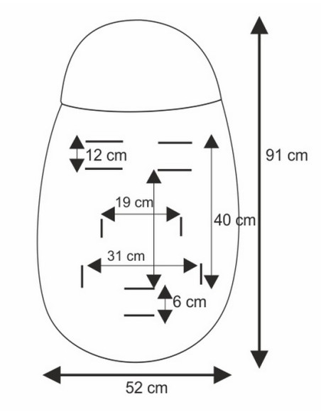 • Śpiworek posiada otwory pasujące do pasów 5-punktowych
