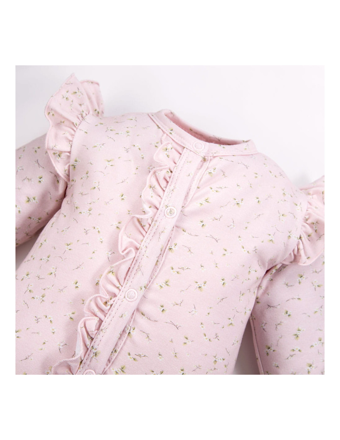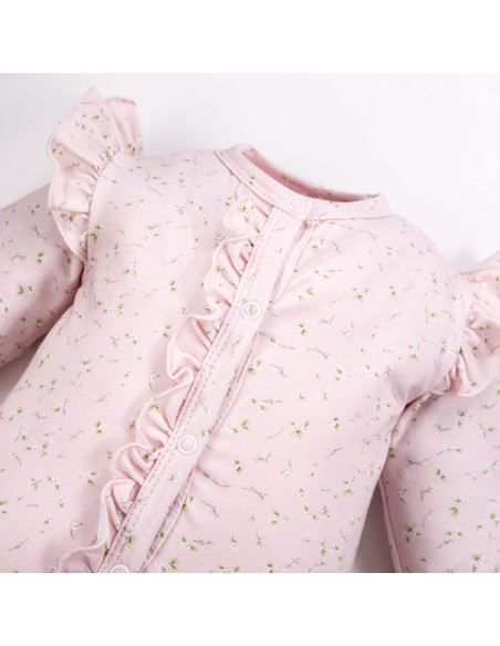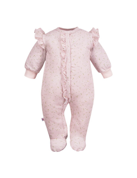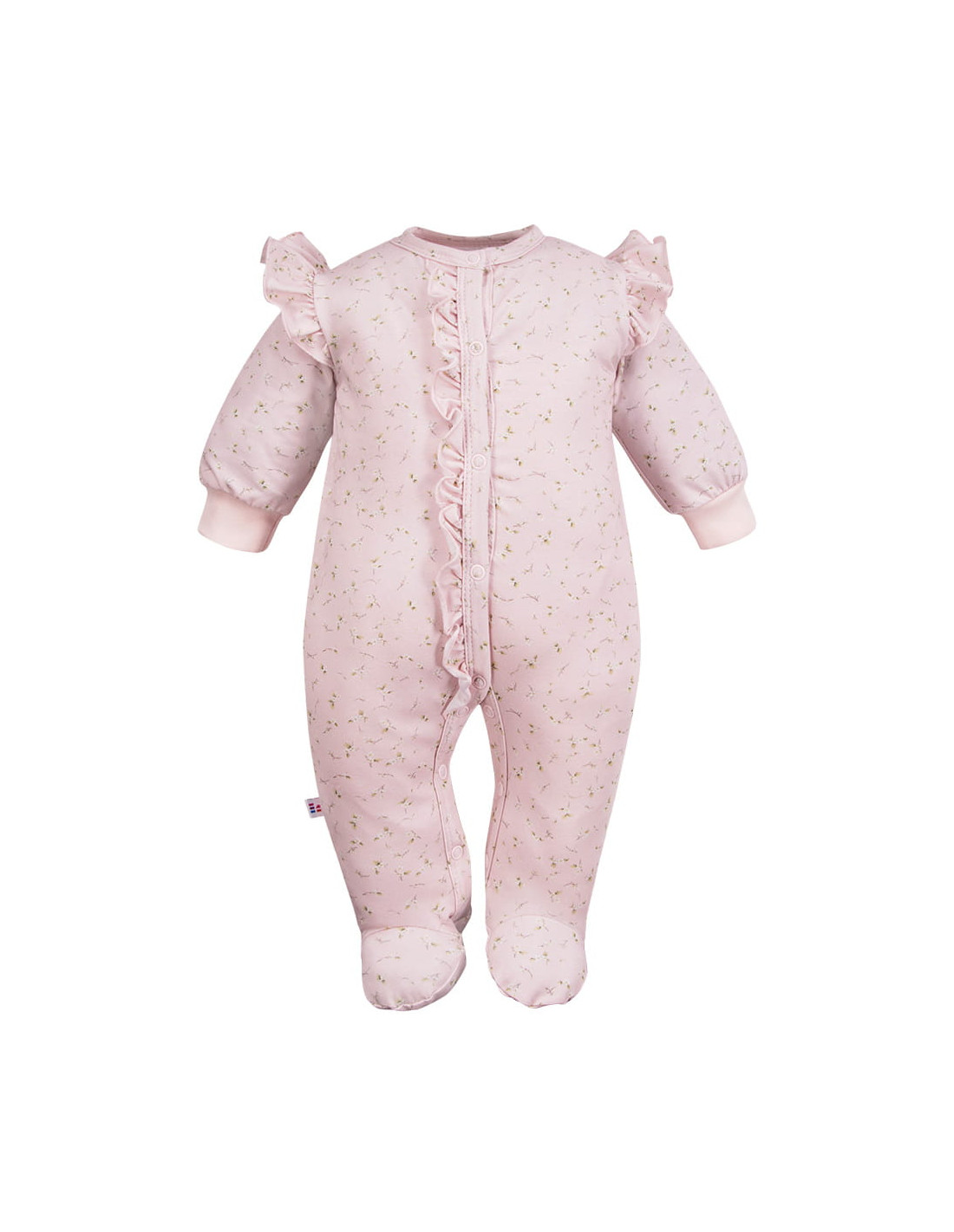 EEVI Pajac dziecięcy ze stópkami różowy w kwiatuszki